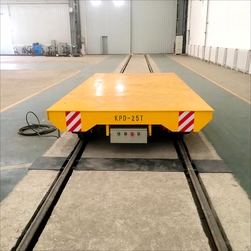 该系列电动平车采用箱式梁结构,具有承载力强、不变形、启动平稳、启动力矩大、对减速机冲击小、电压低、使用寿命长、运行距离的不受限制等优点。与KPX蓄电池供电电动平车相比,避免了蓄电池维护和充电麻烦等缺点,但对轨道铺设要求较高(需要绝缘处理轨道),适用于载重量不大、使用频率较高、中长距离运输的场合。在运行距离较长时,需要多个变压器供电。