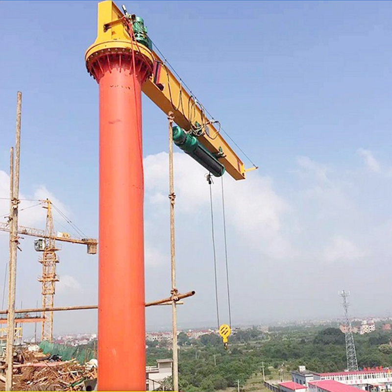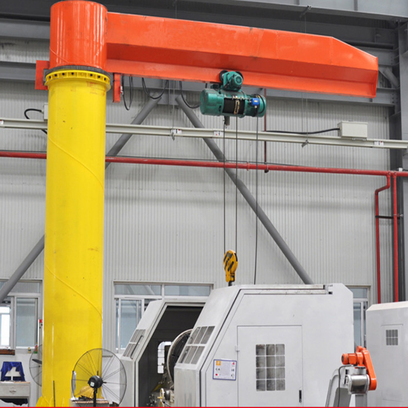 悬臂吊起重机工作强度为轻型,起重机由立柱,回转臂回转驱动装置及电动葫芦组成,立柱下端通过地脚螺栓固定在混凝土基础上,由摆线针轮减速装置来驱动悬臂回转,电动葫芦在悬臂工字钢上作左右直线运行,并起吊重物。起重机旋臂为空心型钢结构,自重轻,跨度大,起重量大,经济耐用。内置式行走机构,采用带滚动轴承的特种工程塑料走轮,摩擦力小,行走轻快;结构尺寸小,特别有利于提高吊钩行程。悬臂吊起重机是为适应现代化生产而制作的新一代轻型吊装设备,配合了可靠性高的环链电动葫芦尤其适用于短距离,使用频繁,密集性吊运作业,具有高工作效率、节能、省事、占地面积小,易于操作与维修等特点。