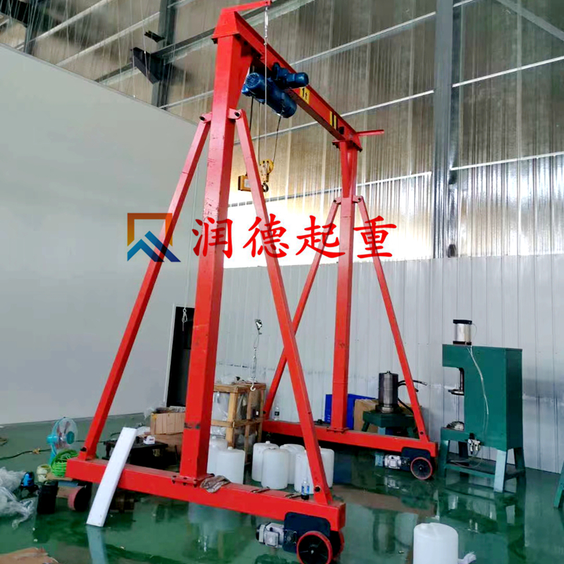 龙门架分为移动式、电动式、简易式、升降式、这些都在是工厂与大型车间或者装卸公司都是可以使用到的,龙门架的外观像门一样,但是在一定龙门架的时候便携轻易,底座主要是有滑轮移动,小小滑轮大作用,电动龙门架可搭配微型电动葫芦可有线无线运行甚是轻快。东弘起重在为每一个客户订制小型吊机或者简易龙门架的时候把便携的辅助工具用上,当然龙门架也是可以搭配手拉葫芦的。在整个运行中全靠手拉葫芦的链条来运行。多种搭配多种选择。