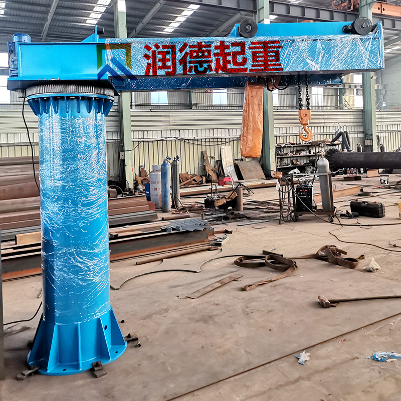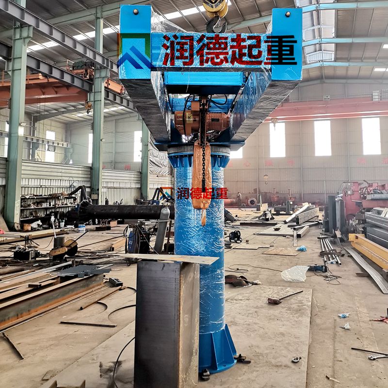 悬臂吊回转装置采用圆管作为壳体,内部安装调心滚子轴承,可实现悬臂自由转动,由于调心滚子轴承自身的性能,即使腰圈与立柱的同心度略有偏差,也能保证悬臂吊安全正常使用。