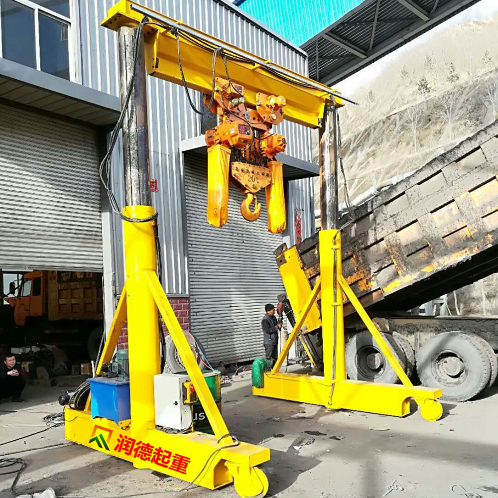 用起重机把龙门架平稳竖起。(注:起重做业存在风险,请专业人士操作,注意人身安全)